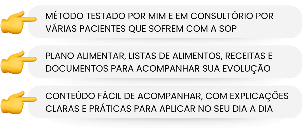 Absolutamente não! O método é baseado em alimentação equilibrada e sustentável, sem restrições extremas ou ‘dietas da moda’. Você vai aprender a fazer escolhas inteligentes que nutrem seu corpo e ajudam a controlar os sintomas do SOP de forma natural.